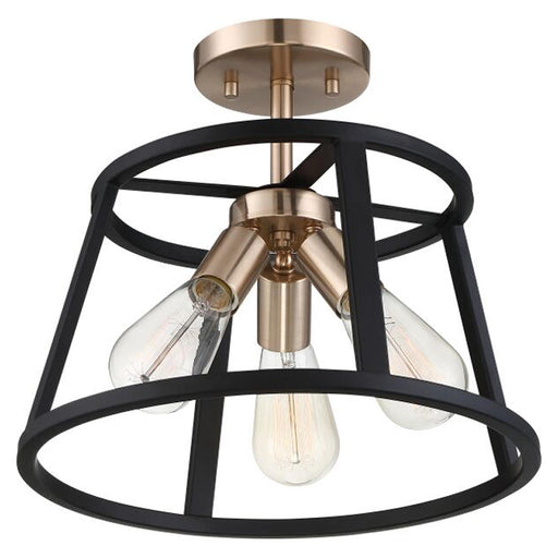 NuvoFeatures Finish: Copper Brushed Brass / Matte Black Fixture Material: Steel Voltage: 120V Dimensions: 14" W x 12" H Canopy: 5" Dia. Lamping: 3...