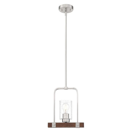 NuvoFeatures Finish: Brushed Nickel / Nutmeg Wood Material: Steel, Glass, Wood Shade: Clear Seeded Glass Voltage: 120V Dimensions: 4.25" W x 9" H x...