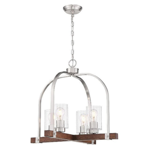 NuvoFeatures Finish: Brushed Nickel / Nutmeg Wood Material: Steel, Glass, Wood Shade: Clear Seeded Glass Voltage: 120V Dimensions: 24" W x 20.25" H...