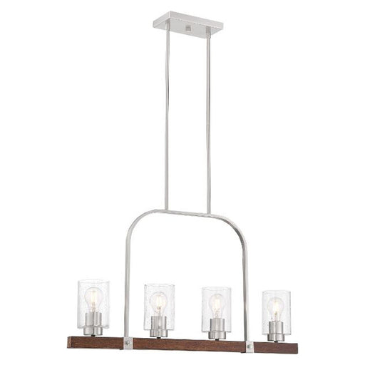 NuvoFeatures Finish: Brushed Nickel / Nutmeg Wood Material: Steel, Glass, Wood Shade: Clear Seeded Glass Voltage: 120V Dimensions: 28.25" W x 10" H...