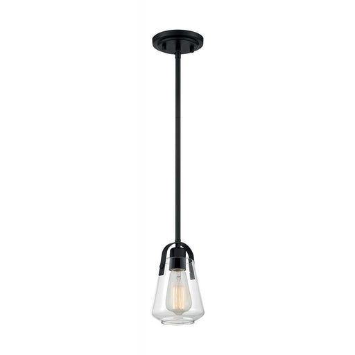 NuvoFeatures Finish: Matte Black, Brushed Nickel Material: Steel Shade: Clear Glass Voltage: 120V Installation: Down Only Dimensions: 5" W x 8.38" H...