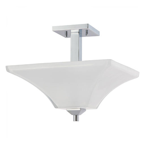 NuvoFeatures Finish: Polished Chrome Material: Metal, Glass Shade: Satin White Glass Voltage: 120V Dimensions: 13" W x 6.25" H Canopy: 5.5" Dia. x...