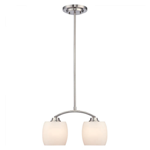 NuvoFeatures Finish: Brushed Nickel Fixture Material: Metal, Glass Shade: Satin White Glass Voltage: 120V Dimensions: 13.75" W x 12" H Lamping: 2 x...