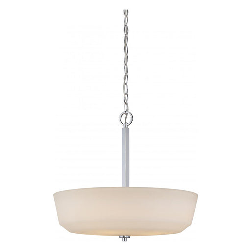 NuvoFeatures Finish: Polished Nickel, Forest Bronze Material: Steel Shade: White Glass Voltage: 120V Dimensions: 18" W x 17.63" H Canopy: 5 Dia. x 0....