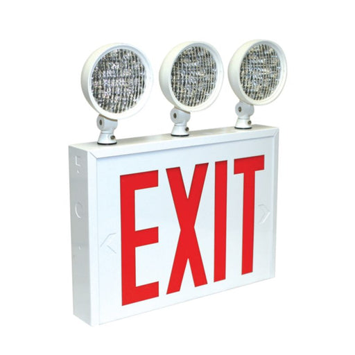Nora NEX-751 LED Exit & Emergency Combo with 3 Adjustable Heads, Heavy Duty Steel Case - Red Letters