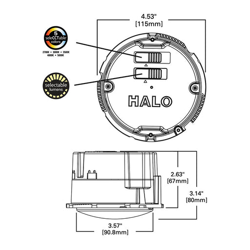 Halo HLBC4 4" Ultra-Slim Regressed LED Downlight, Selectable CCT & Lumens, Dual Install, Warm Dim