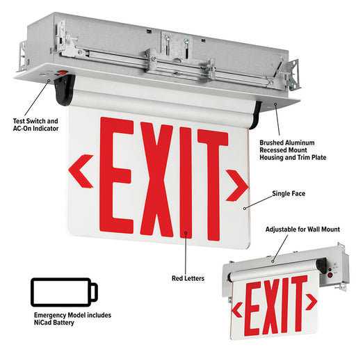 View full detailsNora NX-813-LEDR Recessed Adjustable LED Edge-Lit Exit Sign, AC Only - Single Face, Red Letters