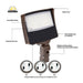 LED flood luminaire, featuring field switchable wattage and color temperature, for use in outdoor applications.