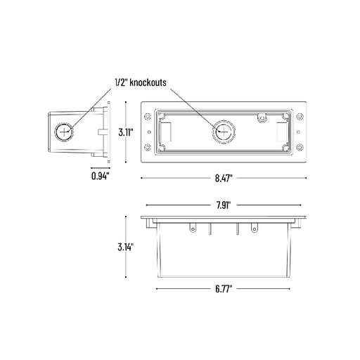 NoraHorizontal housing for LED Brick Step Light face plate (NSW-851, NSW-852 & NSW-853) Features Finish: Black Dimensions Width: 8.5" Height: 3...