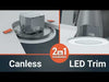 A slim 2-in-1 installation LED downlight with integral driver and JBox suitable for fast installation directly into a ceiling with no housing needed, or retrofit as an LED Trim into an existing housing.