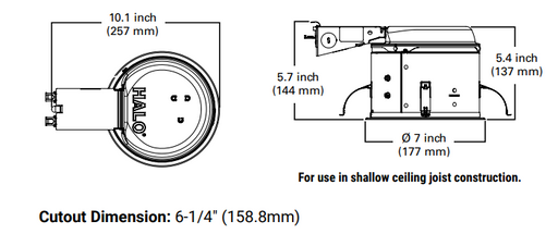 HaloThe H27RICAT housing is designed for remodelling use in shallow ceilings where 2" x 6" joist construction is used. The wide variety of trims availa...