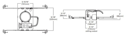 HaloRecessed 4" aperture ultra-shallow new construction housing for use with LED integrated trims. Suitable for 2x4 residential framing or shallow plen...