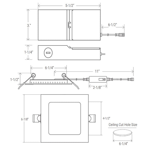 View full detailsElite FS-RL676 6" Canless LED Fire Rated Square Slim, 1000 Lumens, CCT Selectable, 120V