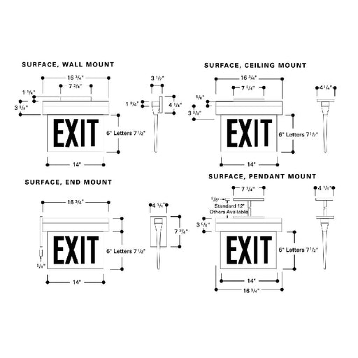 View full detailsSure-Lites ECHX Chicago Edge-Lit LED Exit Sign Housing, Surface Mount