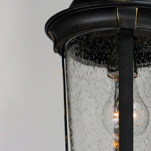 MaximThe craftsman inspired Bungalow outdoor cast aluminum collection is finished in Bronze. The exterior Seedy glass adds texture while the interior W...