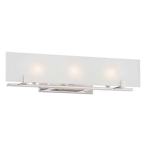 Features Finish: Polished Nickel Material: Metal Shade: Frosted Glass Voltage: 120V Dimensions: 24" W x 5.75" H x 5" Ext. Back Plate: 9.84" L x 4...