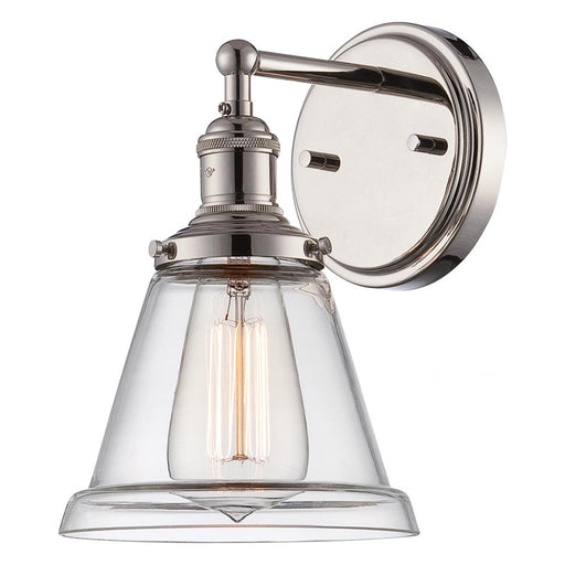 NuvoFeatures Finish: Polished Nickel Material: Steel Shade: Clear Glass Voltage: 120V Installation: Up/Down Dimensions: 4.88" W x 5.5" H x 5.63" Ext...