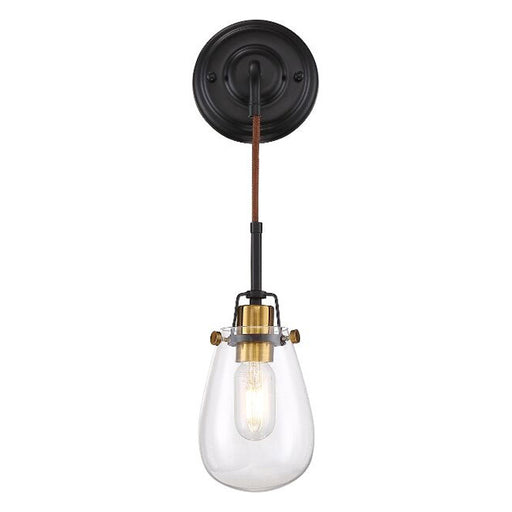 NuvoFeatures Finish: Black / Vintage Brass Material: Steel Shade: Clear Glass Voltage: 120V Installation: Down Only Dimensions: 5" W x 21.25" H x ...