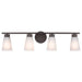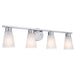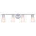 The Stamos 4 Light Vanity Light brings a soft modern touch to your bathroom. Its Satin Etched Glass shades softly add dimension, while its finish keeps it clean. Install the lights facing up or down to effortlessly achieve the lighting you want.