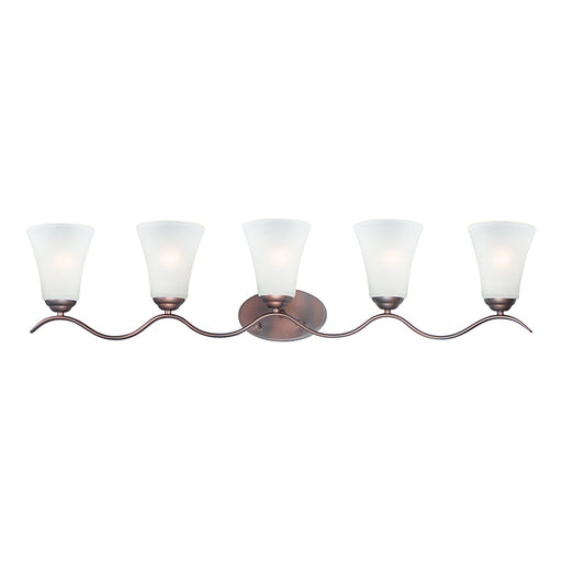 Gently waving arms of Satin Nickel or Oil Rubbed Bronze support tall-profile Frosted glass shades creating a scale normally not found in this categ...