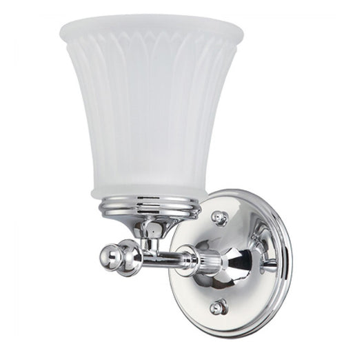 NuvoFeatures Finish: Polished Chrome Material: Metal Shade: Frosted Etched Glass Voltage: 120V Installation: Up/Down Dimensions: 5.38" W x 9" H x 6...