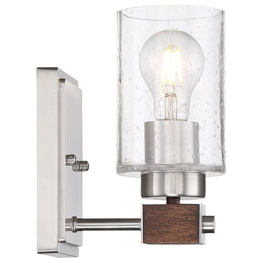 NuvoFeatures Finish: Brushed Nickel / Nutmeg Wood Material: Steel, Glass, Wood Shade: Clear Seeded Glass Voltage: 120V Dimensions: 4.25" W x 9" H x...