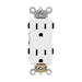 Industrial grade receptacles are made of durable polycarbonate thermoplastic and have a smooth, easy to clean surface. Unique screw terminal guards provide fast, easy insulation from conductive surfaces. Back and side wired, with break-off tabs for easy two-circuit conversion.