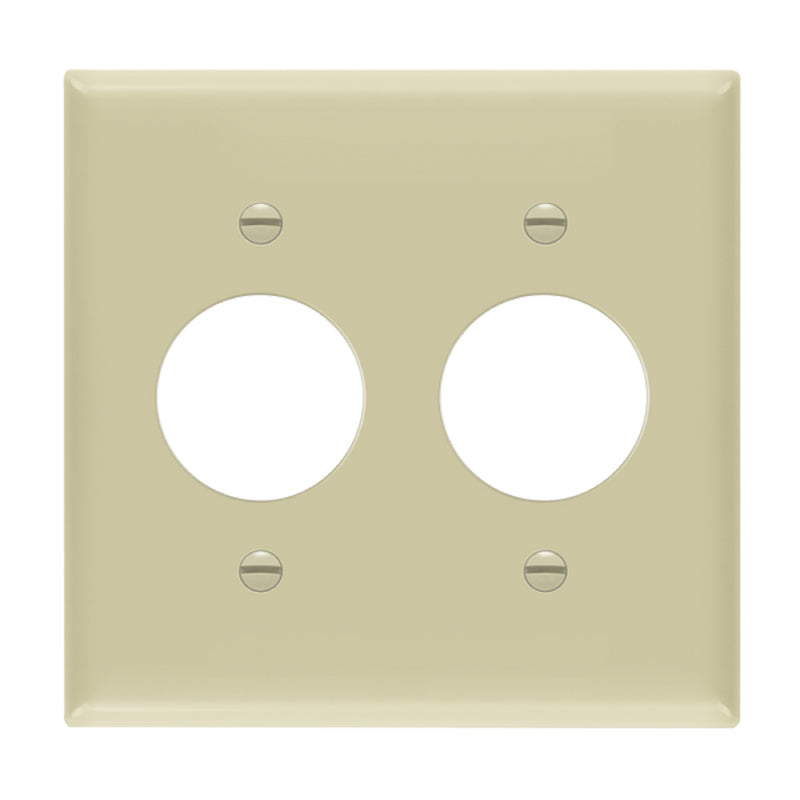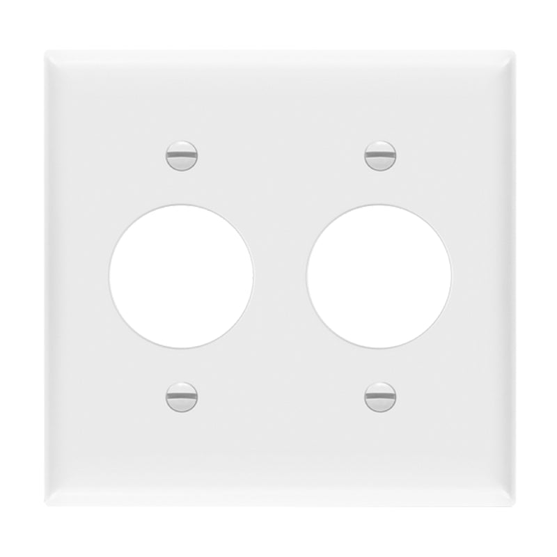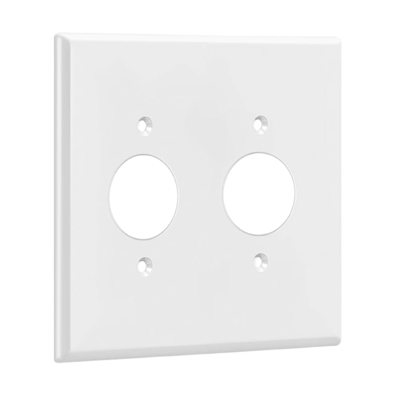 Round single receptacle with 1.406" diameter holes. Enerlites polycarbonate thermoplastic wall plates are manufactured to provide durability, flexibility, and resilience to bending and high-impacts.