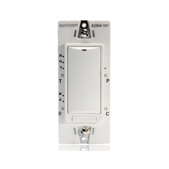 EOSW-100 Series RF Wall Switches work with EOPC-100 wireless occupancy sensors, and optional EORS-100 and EOHR-100 remote switches, to turn lights on and off based on occupancy. Models are available to control one or two switched legs in applications with or without neutral wires at the switch box.