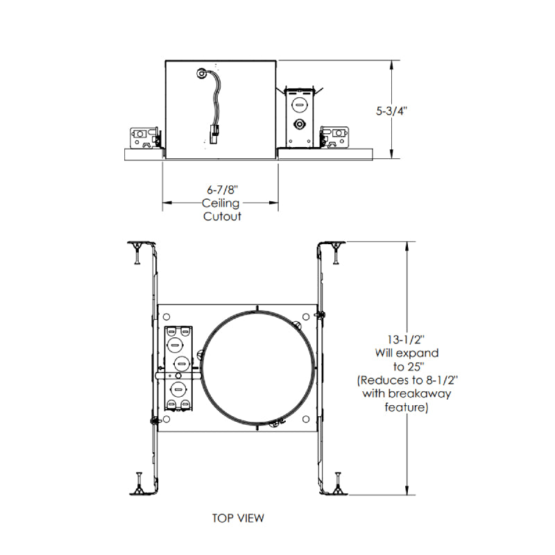 - Ceiling Cutout: 6.88"