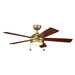 - Product comes with: (5) Fan blades, Ceiling mounting bracket, (1) Canopy, Ball/downrod assembly, Coupling cover, Fan motor assembly, Light plate,17W LED light kit/switch housing,(1) Glass shade, Part bag contents Mounting hardware: (2) star washers, (3) wire nuts, (2) machine screws, (2) washers, (2) screws , Blade attachment hardware: (17) screws, (17) fiber washers, Blade bracket attachment hardware: screws, Safety cable hardware: wood screw, lock washer, (5) flat washer. (2) Pull chains and fobs