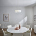 The clean lines and simple styling make this versatile 3 light semi flush ceiling fixture or pendant distinctive. Featuring a Black finish, a White Microfiber shade and a Satin Etched Glass diffuser, this design can complement any space.