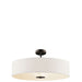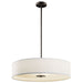 The clean lines and simple styling make this versatile 3 light semi flush ceiling fixture or pendant distinctive. Featuring a classic, Brushed Nickel finish and Olde Bronze Finish, a White Microfiber shade and a Satin Etched Tempered Glass diffuser, this design can complement any space.