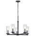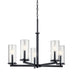 Streamlined and simple, This Crosby 5 light chandelier in Black delivers clean lines for a contemporary style. The clear glass shades enhance this minimalistic design.