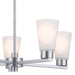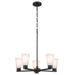 The Stamos 24" 5 Light Chandelier adds a soft modern touch. Its Satin Etched Glass shades softly add dimension, while its Black / Brushed Nickel / Olde Bronze finish keeps it modern. Install the lights facing up or down to effortlessly make the Stamos chandelier work for your space.