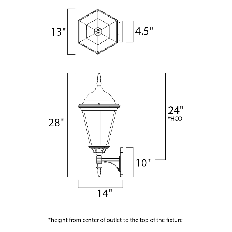 - Backplate: 4.5" W x 10" H x 24" HCO