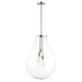 The crystal clear, large-scale glass pendants attest to the craft of hand-blown glass with their impressive scale. These hand crafted glass pendants embody simplicity and minimalism. Accented with Satin Nickel hardware, the style pairs well in a variety of settings.