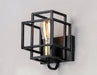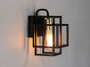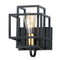 A geometric design constructed of square steel tubing that is finished in a Matte Black and accented with Satin Brass.