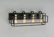 A geometric design constructed of square steel tubing that is finished in a Matte Black and accented with Satin Brass.