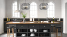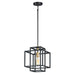 A geometric design constructed of square steel tubing that is finished in a Matte Black and accented with Satin Brass.