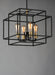 A geometric design constructed of square steel tubing that is finished in a Matte Black and accented with Satin Brass.