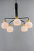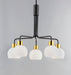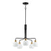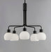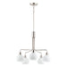 A charming collection of farmhouse inspired design. Satin White glass domes suspend from individually distributed tube arms.