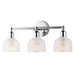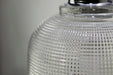 Crisp and clean define this new collection with Polished Chrome frames and Clear, prismatic shades. The geometric pattern of the glass diffuses the glare while providing ample light.