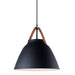 Inspired by classic Scandinavian design, these metal spun pendants of Black, White and Brushed Platinum feature mixed materials such as opal white glass or natural elements like Walnut finished wood and leather straps.