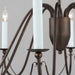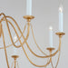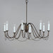 Sweeping metal accents links create classic curves on a minimalist chandelier.