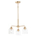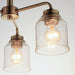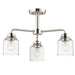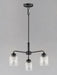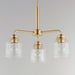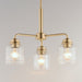 A modest frame of steel tubing gently bends to support a cluster of Clear Seedy bell-shaped glass. Similarly the bobeches and other metal accents echo that traditional bell shape creating an instant classic.