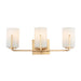 Inspired by the Modernist architect Edward Dart, this collection features straight line frames finished in Satin Brass or Satin Nickel that support Satin White glass cylinders for a clean and modern look. The end of the frames turn up and end in an angle emphasizing a minimalist geometry popular in Modernist work.