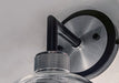 Machined and knurled sockets are finished in Brushed Aluminum which gives stark contrast to the Black round tube frames. Heavy weight Clear hand-blown glass spheres adds scale to this industrial classic.