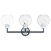 Machined and knurled sockets are finished in Brushed Aluminum which gives stark contrast to the Black round tube frames. Heavy weight Clear hand-blown glass spheres adds scale to this industrial classic.