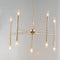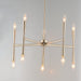 Civic styling using straight rectilinear channels radiating from a central connector. The light sources flare out both up and down with tapered candle covers creating a form evocative of a classic torch.